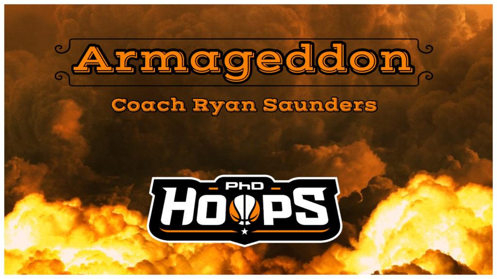 Coach Ryan Saunders (Assistant Coach, Belmont Abbey College) shows an outstanding shooting drill that combines three-pointers, dribble pull-ups, and layups as players are required to sprint into made shots from various locations on the floor.